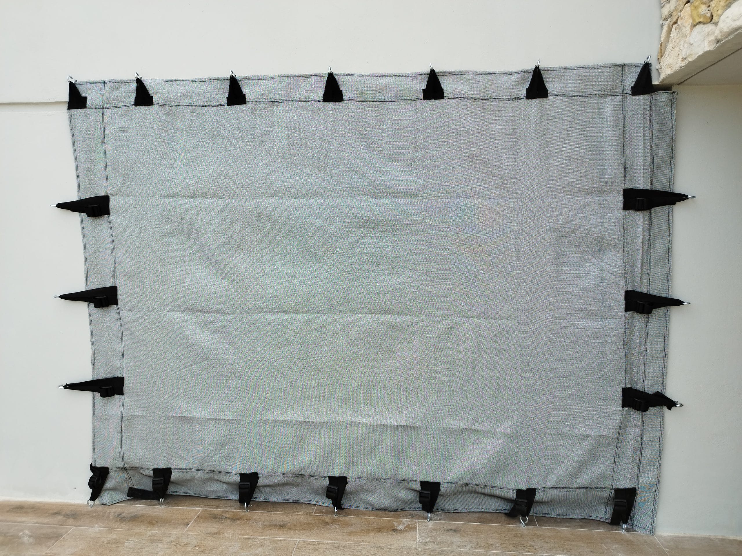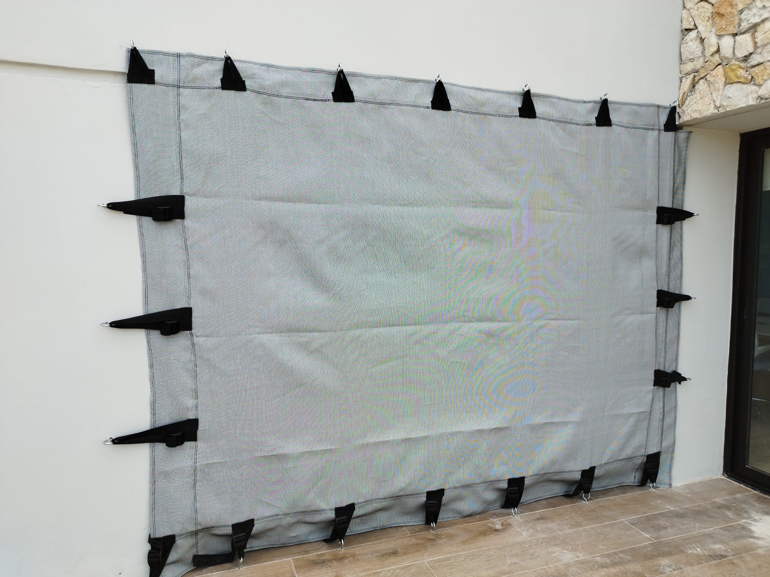 Nuestro equipo especializado de instaladores realiza una preparación previa, insertando el sistema de anclajes en todas las áreas para proteger, a partir de esto el cliente puede hacer la colocación de las mallas ante una alerta de huracán, siguiendo 3 pasos: