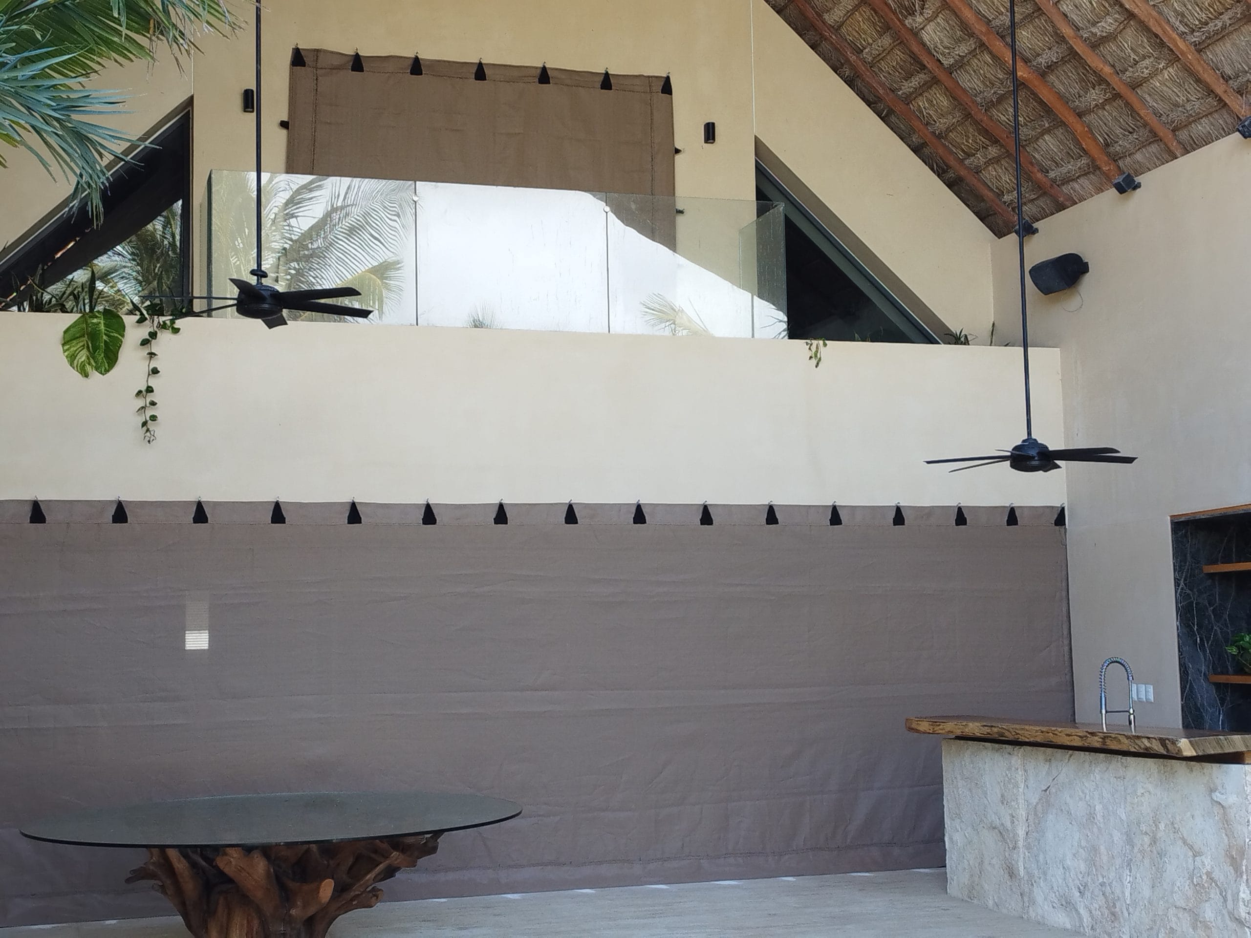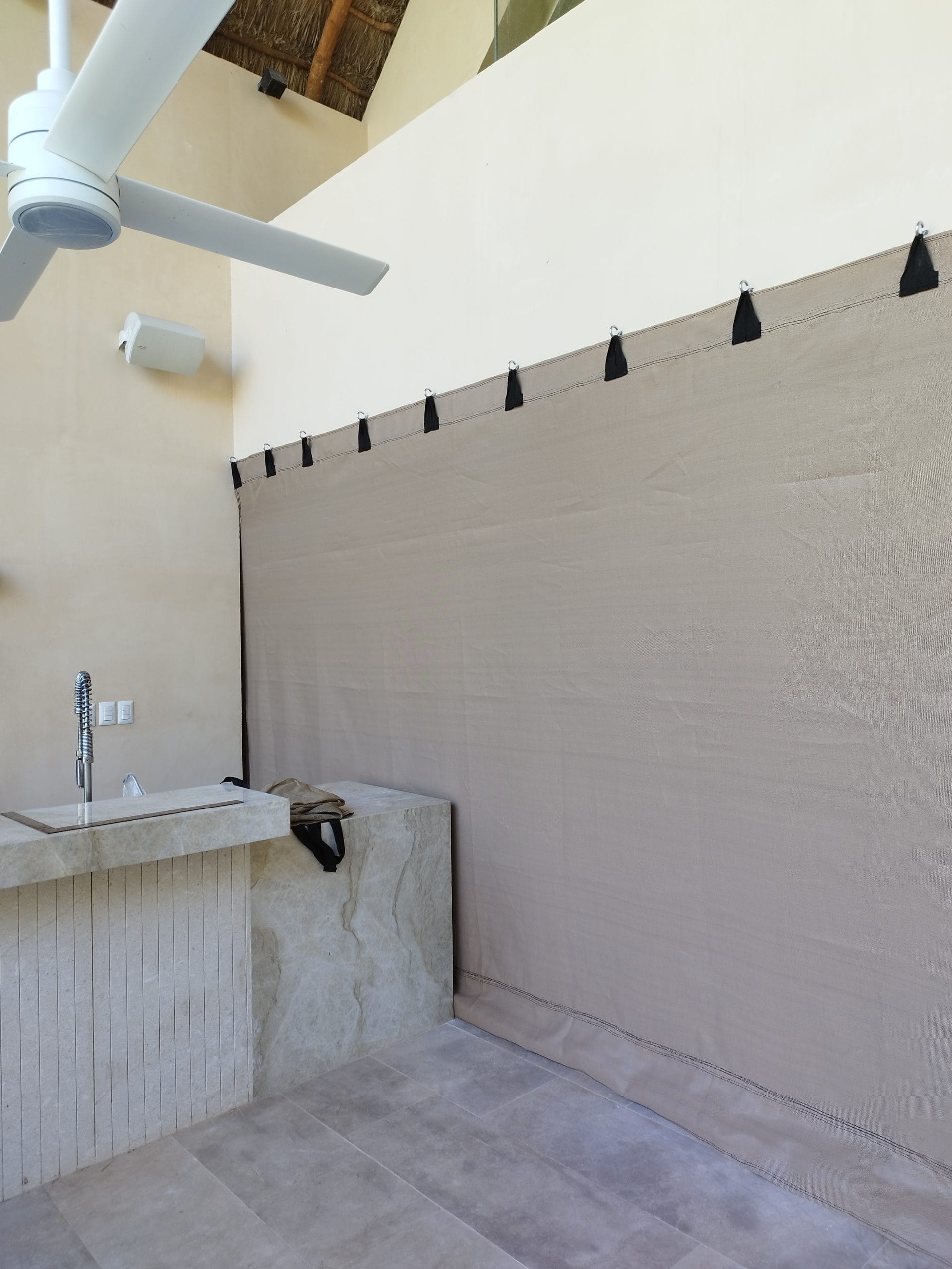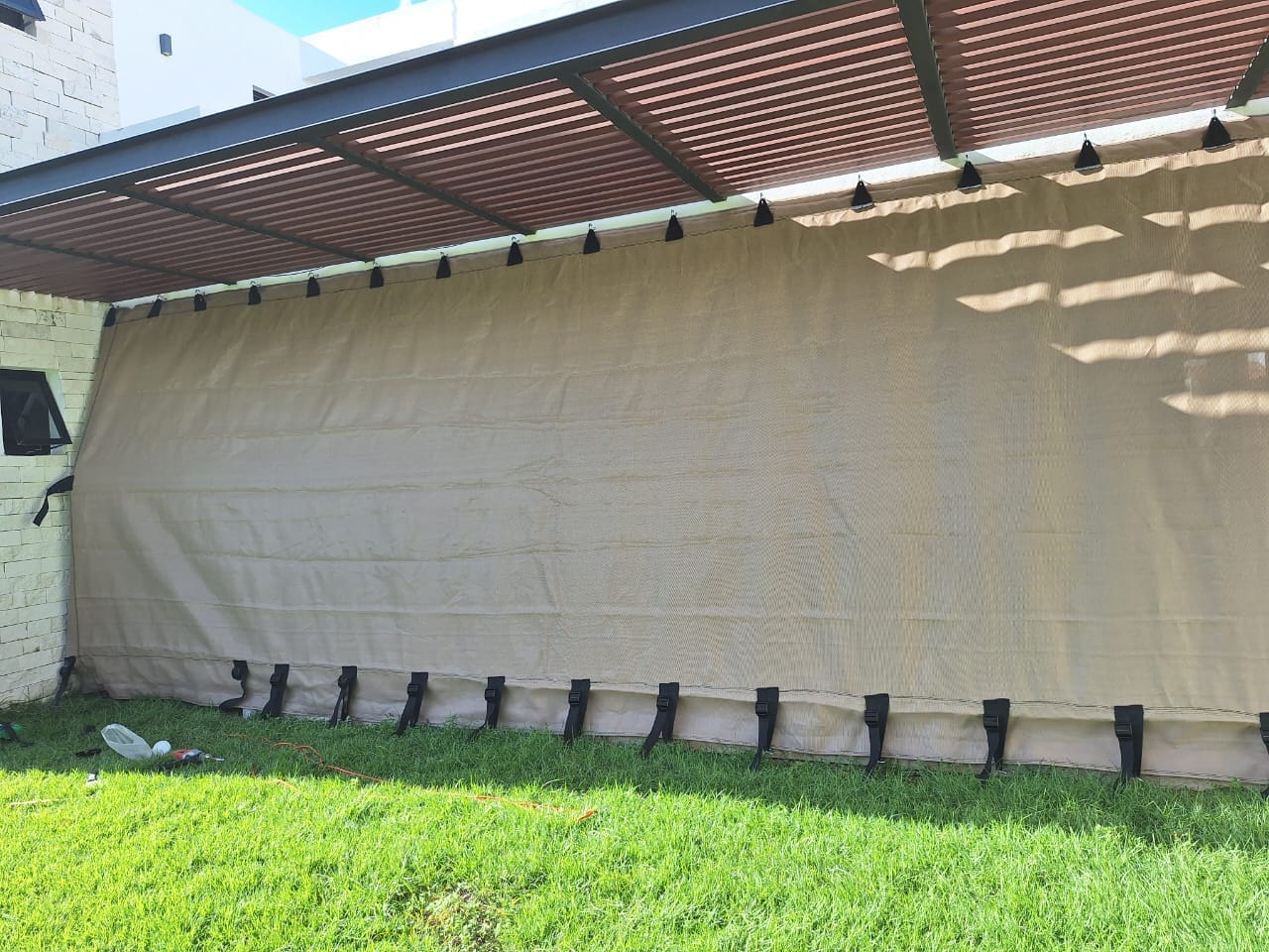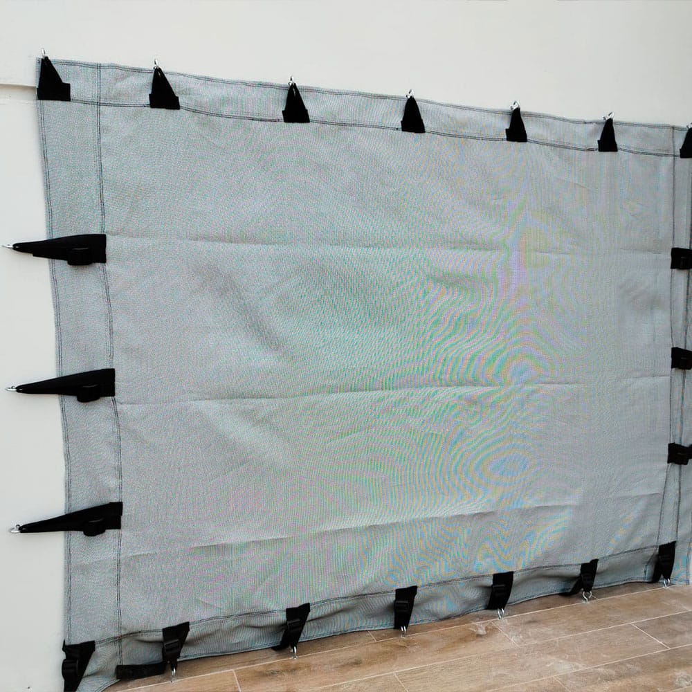 La lona o malla antihuracanes funciona como una barrera protectora que impide que los vidrios se rompan y que el viento, los escombros y otros objetos entren en la propiedad, lo que puede resultar en daños significativos y lesiones a los ocupantes de la misma.